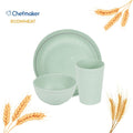 Juego de platos, tazones y vasos, un total de 16 piezas de esta vajilla de fibra de paja de trigo, que puede atender a una familia de 4 personas.